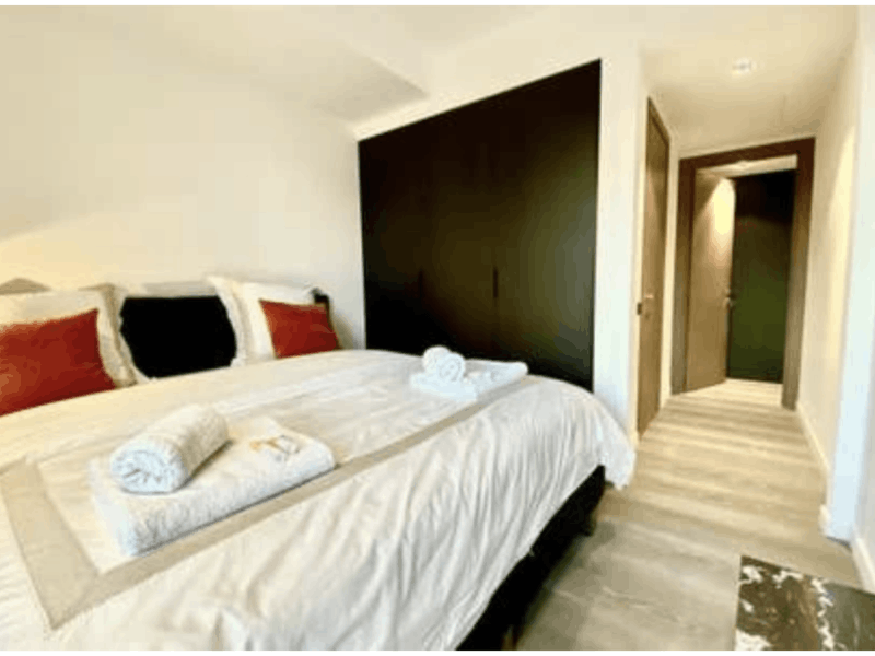 Appartement moderne de 4 chambres en suite situé dans un immeuble avec ascenseur au quatrième étage.