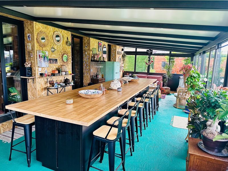 Pensé comme un véritable lieu de vie et décoré avec soin par Kristel, chaque détail a été imaginé afin que chacun se sente chez soi. Ce lieu mêle des espaces communs élégants et chaleureux à une cuisine, véritable concentré d'efficacité et de convivialité.