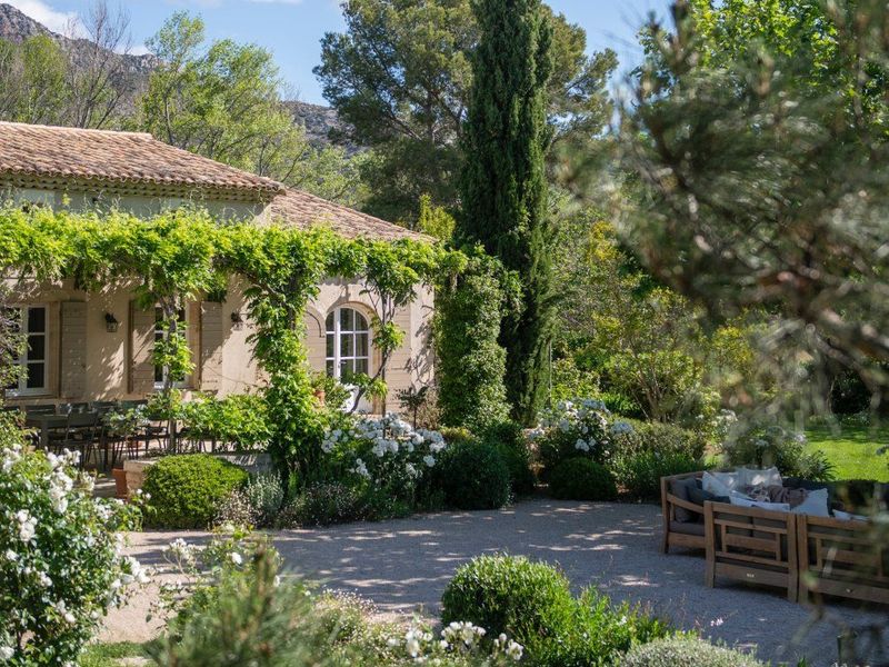 Le lieu offre de multiples espaces de vie extérieurs : Apéritifs festifs, Brunch, et barbecue coté piscine, le côté convivial de la terrasse principale sous la glycine, les champs d'oliviers…