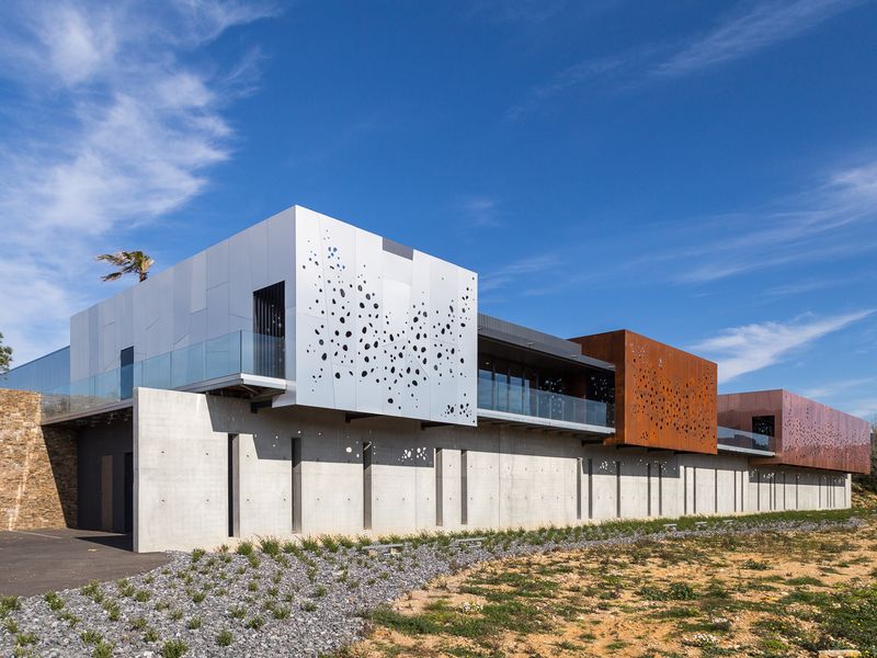 Un bâtiment contemporain et minimaliste, parfaitement intégré dans le paysage, signé par l'architecte Pascal Flayols. Le domaine est dressé au milieu des vignes, entièrement ouvert sur la nature et baigné de lumière. Dans un décor au luxe discret, l'accueil réservé aux visiteurs est souriant et généreux afin de leur faire vivre un moment de partage et de plaisir autour du vin.