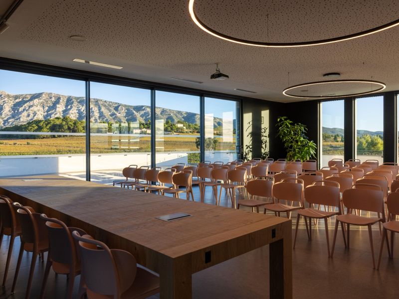 Au beau milieu des vignes et au sein de notre domaine viticole, vous traverserez dans un premier temps notre passerelle à vue panoramique qui donne sur le Mont Aurélien ainsi que le massif de la Sainte-Baume. Une fois cette passerelle traversée, vous serez dans votre lieu d'événement avec une magnifique vue sur la montagne de la Sainte-Victoire.