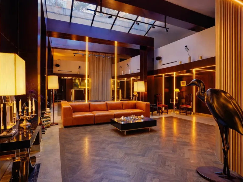 L’espace principal s’organise autour d’un grand salon pouvant accueillir différentes configurations : dîner assis, réception ou présentation de produits.