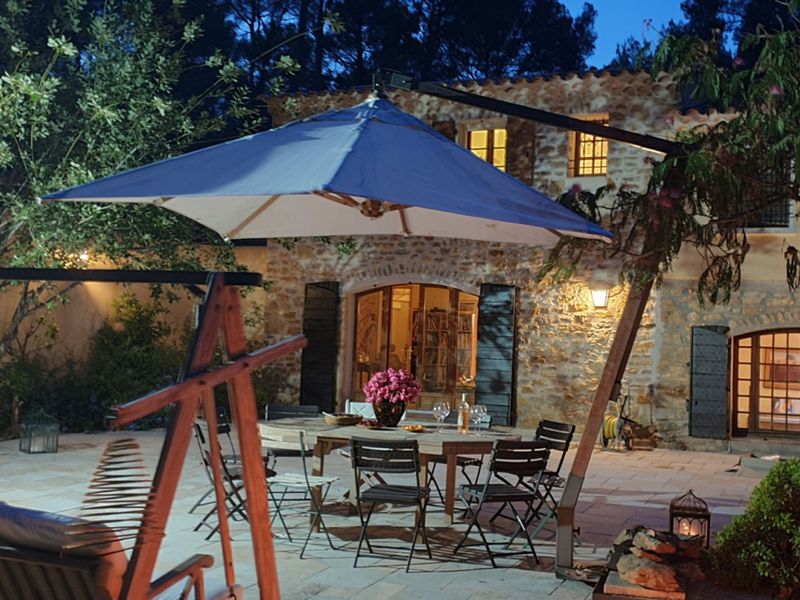 Loin de la promiscuité des développements modernes, l'ancien domaine provençal au Castellet, restauré avec passion, est un havre de tranquillité. A 15 min des plages et du site du Grand Prix de France, à 45 min ou moins des villes attractives d'Aix, Marseille ou Toulon, ses 3 ha de nature sont situés au cœur des vignobles. La maison de maître et sa petite sœur dans les bois à proximité, offrent 450 m², 5 salles de réception et 6 chambres pouvant accueillir confortablement 11 personnes.
