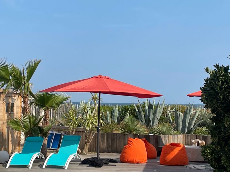 Grande villa 220 m² sur un terrain de 1000 m² sur la plage, grande terrasse, patios, décoration vintage.