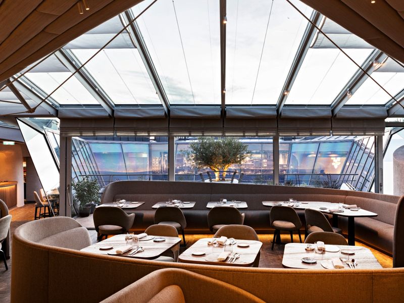 Le restaurant flotte comme un nuage dans le ciel. C'est l'écrin idéal qui rehausse la splendeur de l'artisanat et du savoir-faire français. Il s'ouvre naturellement sur un superbe jardin suspendu sur les toits de Paris grâce aux immenses parois vitrées coulissantes. A l'écart de l'agitation de la capitale, ce jardin unique, paisible et confortable est un lieu où les visiteurs peuvent se désaltérer en profitant des vues panoramiques de la cuisine et du bar.