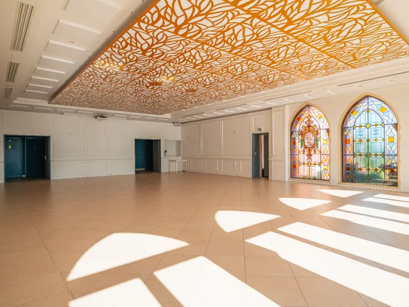 Un espace exceptionnel au Château alliant le charme de ses vitraux à une terrasse surplombant la mer. Ce lieu polyvalent de 306 m² (hall et terrasse compris) peut accueillir jusqu'à 180 personnes. Idéal pour vos soirées prestigieuses, la musique de danse est autorisée jusqu'à 3 heures du matin.