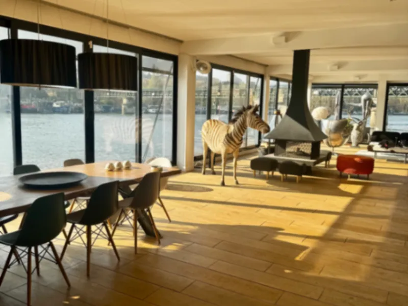 Dès l’entrée, la lumière s’impose. De majestueuses baies vitrées ouvrent l’espace sur la Seine, offrant un panorama saisissant et une sensation de continuité entre intérieur et extérieur. Le temps semble suspendu.