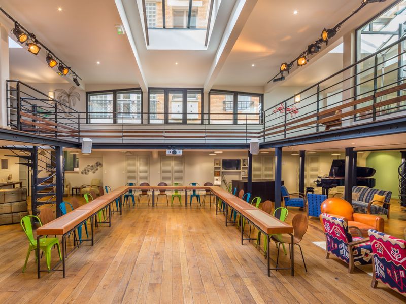 La pièce principale : le loft, un immense espace au design moderne baigné par un puits de lumière permettant d'organiser des réunions, des workshops, des repas, des animations, des shootings photos.