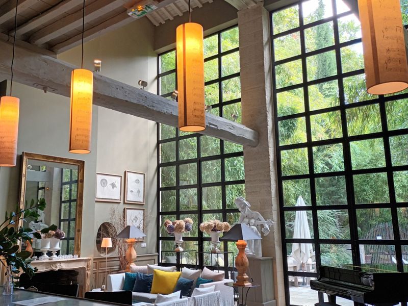 Refuge en plein cœur du centre historique d'Avignon. Maison privée pour vos réunions, shooting photos, événements professionnels ou privés, confidentiels et discrets. A l'abri des regards, à deux pas du Palais des Papes, aménagé dans les anciens communs d'un hôtel particulier du 19ème siècle, la maison vous séduira par ses beaux volumes et sa décoration singulière. Ses grandes verrières laissent découvrir une élégante et grande terrasse, à l'ombre de bambous géants.