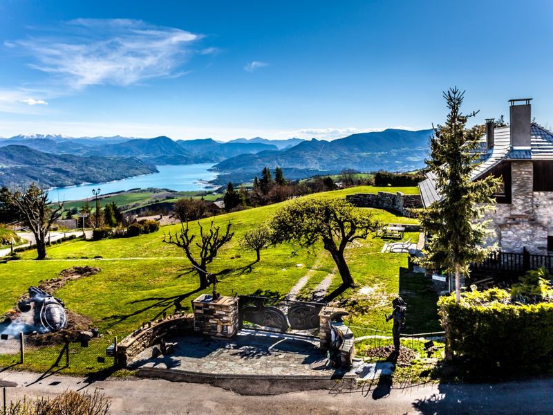 Sur les hauteurs du lac de Serre-Ponçon, décors réalisés par un ferronnier d'art sur le thème de la science-fiction et du fantastique. Scénographie jour et nuit: Machine à fumée, jeux de lumières, bruleurs bio-éthanol.