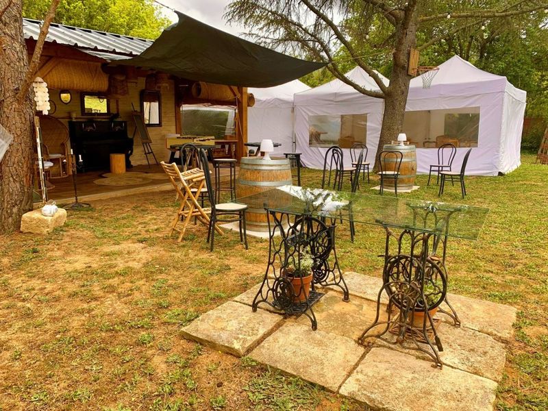 Un grand jardin ombragé avec piscine, boulodrome, table de ping pong, babyfoot pour une journée conviviale. Plusieurs terrasses et barnums pour les espaces couverts et une cuisine d'été équipée. Possibilité de faire intervenir un traiteur pour votre buffet. Location en journée ou soirée. Capacité d'accueil 80 personnes, capacité parking véhicules 20.