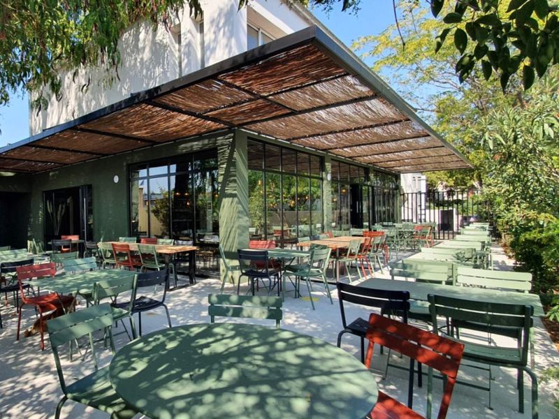 Restaurant spacieux moderne avec un joli patio végétalisé