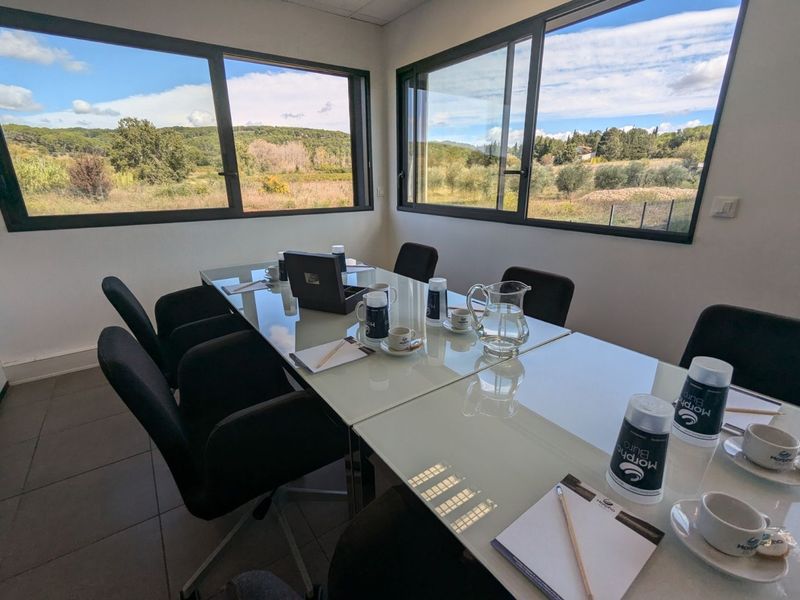 8 à 10 places assises pour vos réunions, formations, présentations, etc. Disponible pour le personnel de vente, les entrepreneurs et les indépendants sur demande préalable.
