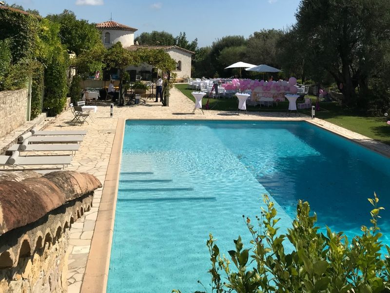Rêve bohème. Située sur 5 000 m² de jardins au sommet de la colline entourant Valbonne, la villa offre une vue impressionnante sur les montagnes, le château de Castellaras et la mer Méditerranée.