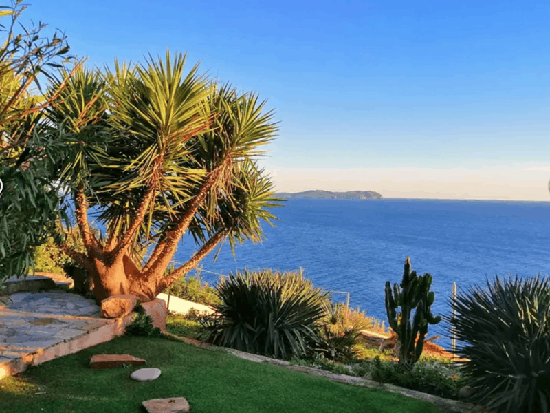 Située dans un domaine sécurisé entouré de collines verdoyantes ma villa d'architecte se trouve en premier rang de mer à 35 m du rivage, plein sud plein soleil.