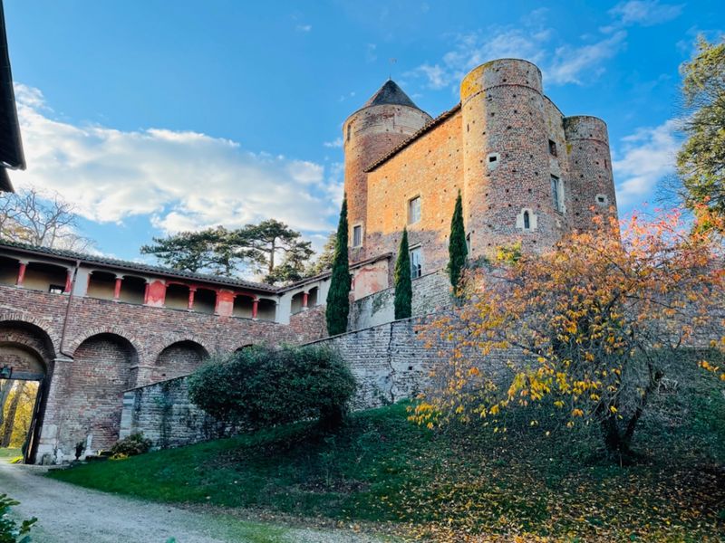 Castral ensemble composed of a main building, a keep and an enclosed courtyard of 4000 m². Guesthouse, outdoor park, ponds and golf courses nearby. 40 minutes from Lyon, 20 minutes from St Exupery airport and 1h15 from Geneva.