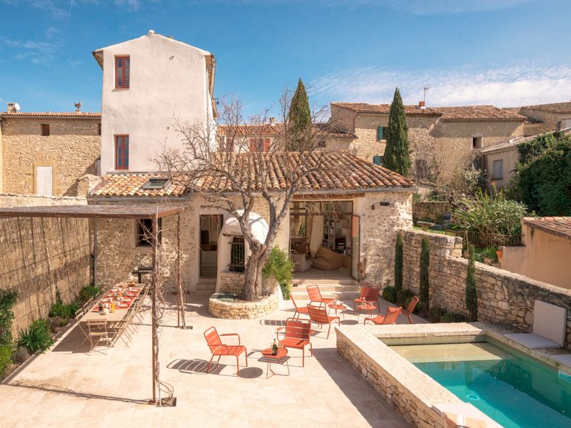Magnificent elevated view in a listed village (crèche village!) Renovation using beautiful materials; modern decoration with old-world charm; small stone swimming pool.