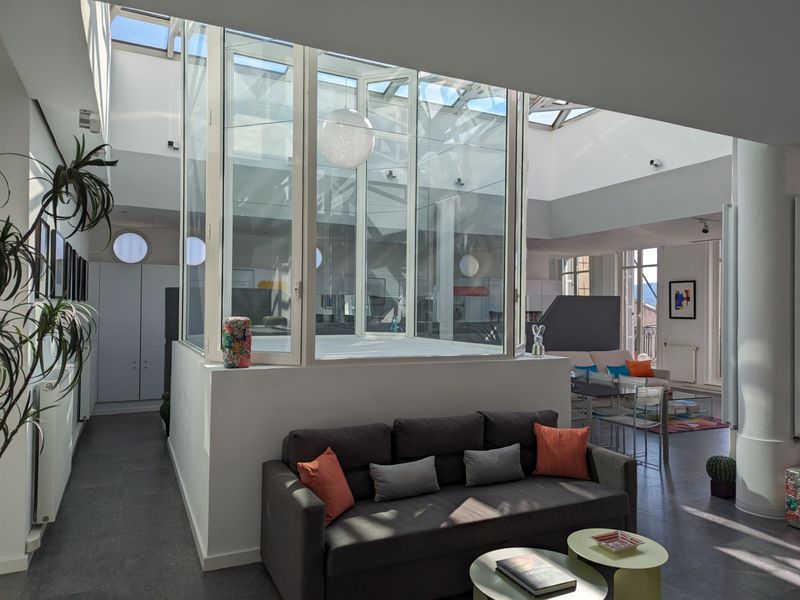 This beautiful 260m2 loft located on the top floor of a building in Marseille's Carré d'Or and renovated by renowned architect André Stern is ideal for film shoots and photo shoots as well as for corporate events ( off-site, team meetings, events on the sidelines of conferences, etc.). It consists of a large living / dining room with a well of natural light as well as an open kitchen.