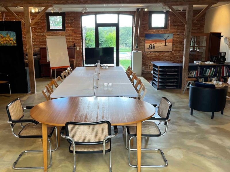 This renovated former stable, in the heart of a 6,500 m² wooded park, hosts all types of events in an 80 m² room: concerts, exhibitions, seminars, meetings, training courses, etc.