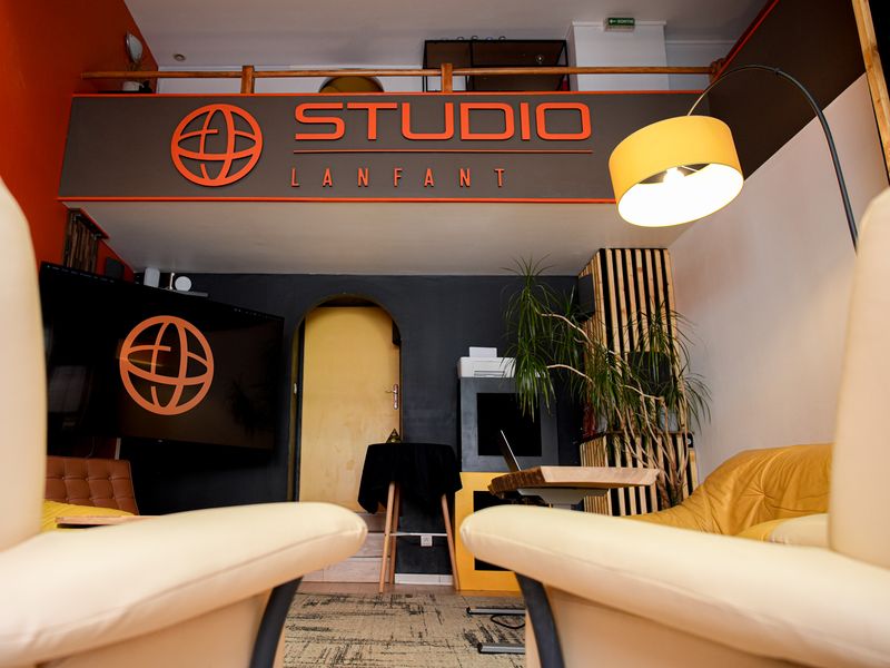 Studio is an atypical 110m2 venue for up to 50 people, with a kitchen/bar equipped with a taffy machine, a large reception area and a cosier space used as a filming studio and to host music groups, stand-up stages or other events.
