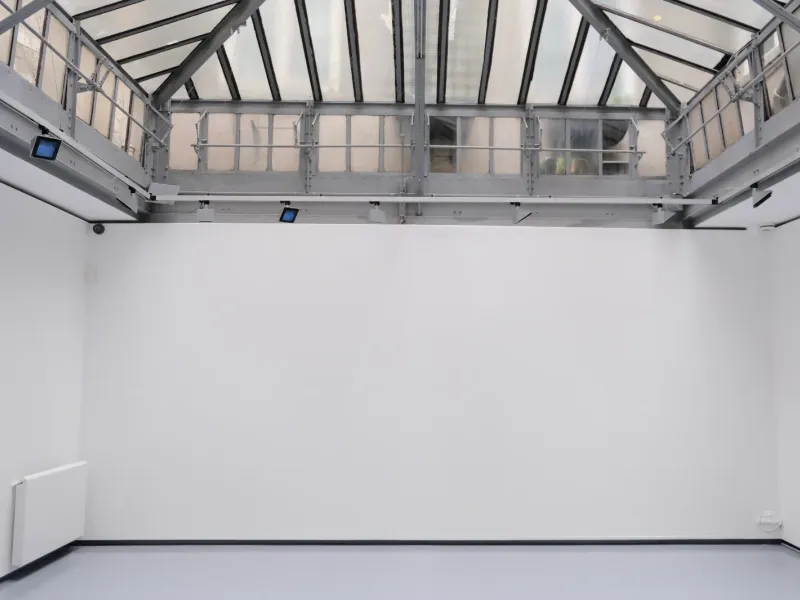Located in the heart of the Marais district, this ground-floor studio of almost 100m² features a large glass roof that floods the space with natural light, creating a warm and inspiring atmosphere.