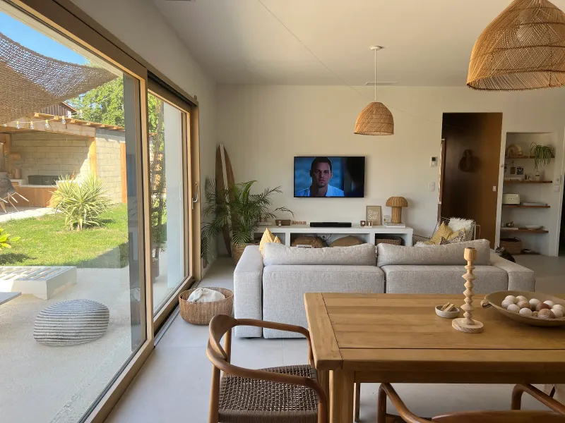 This house, built in 2023, has a Californian style with Balinese influences. Light wood is the main material used in this house, and it's this touch that we like to add throughout, to bring warmth.