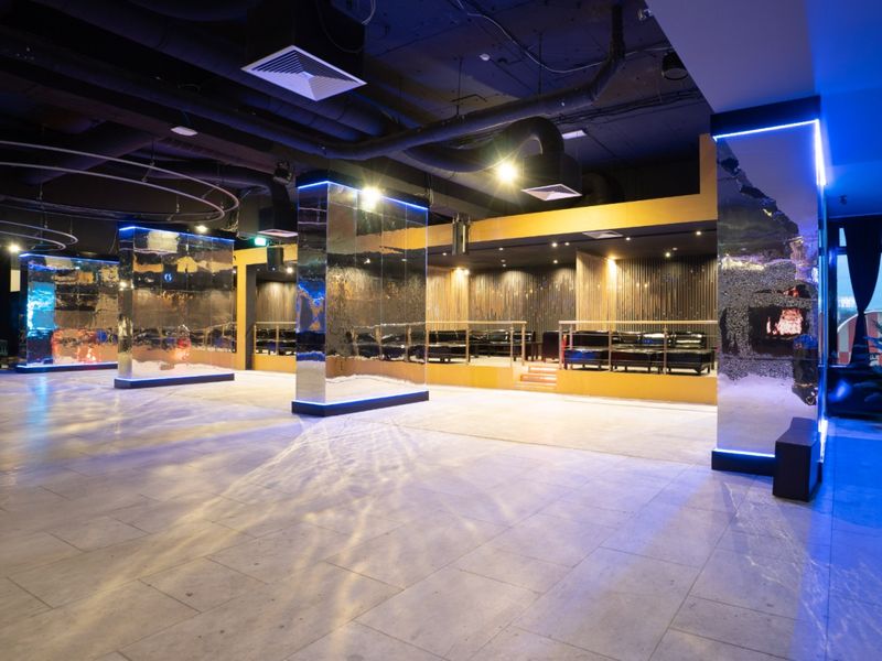The venue is located on the first floor of the building and has a staircase area with cloakroom facilities, a welcome area with the main cloakroom, two action areas and four separate lounges. The location offers space for 800 - 1,000 people. With the help of four lifts, people with walking difficulties can be guaranteed access.