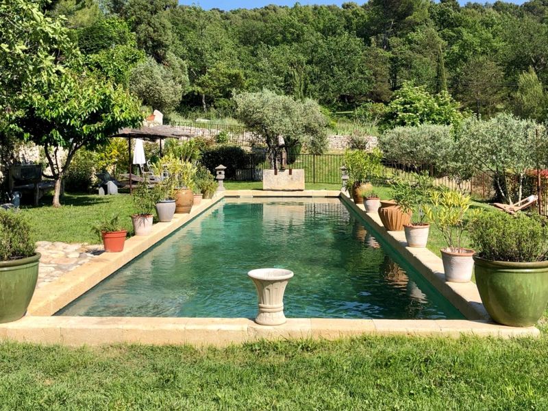 In the heart of a hill, this pretty old farmhouse represents all the much-loved Provençal charm. Old stone walls, arches, large pond, olive groves, lavender fields, vaulted room/lounge, wash house, charming furniture, open view, nature... for your events or for holidays.