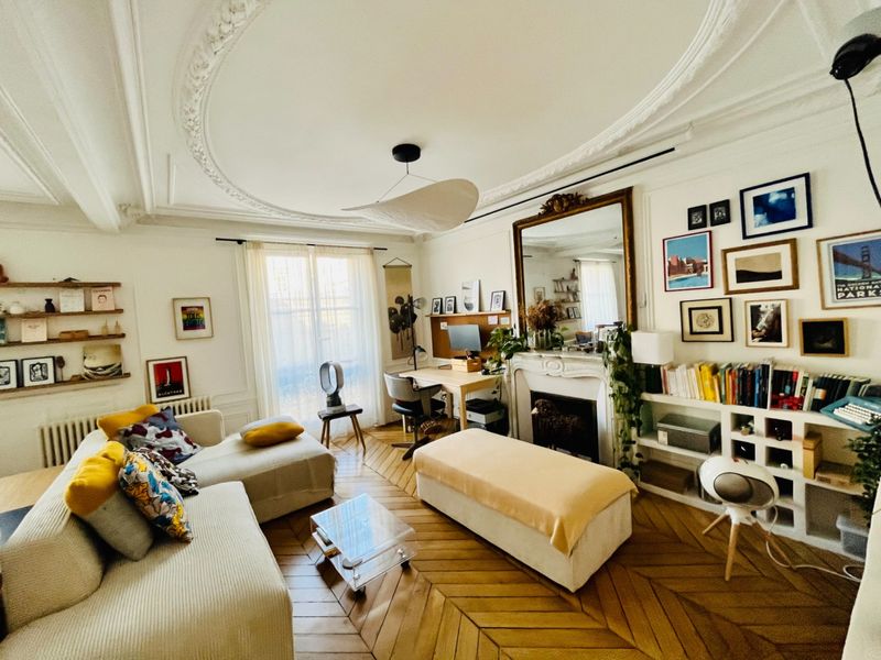 Magnificent 60m2 apartment in a Haussmann building, renovated and tastefully. High quality service (refurbished parquet flooring, magnificent moldings, Jean Prouvé table, Flos lighting, etc.) ideal for a photo shoot!