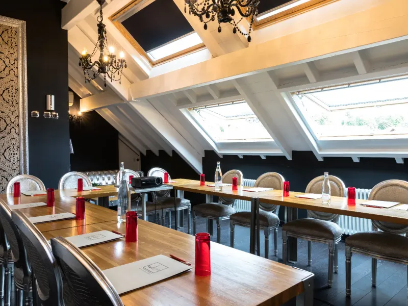 Refined and intimate, this room is inspired by the Baroque style, with its sophisticated details and cosy atmosphere. It is the smallest room in our establishment, offering an exclusive and confidential setting for your small meetings.