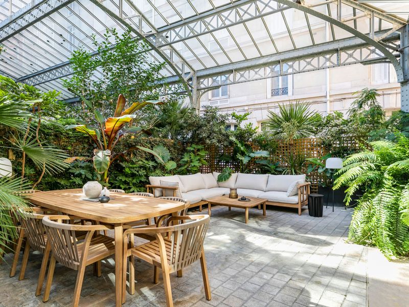 Elegant Parisian Venue with Tree-Lined Terrace & Eiffel Glass Roof