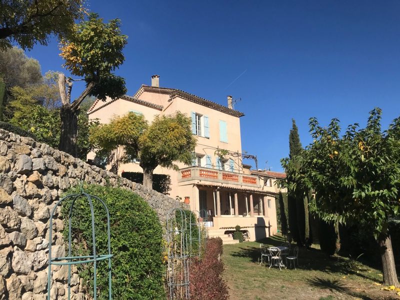 In the heart of the medieval village of Tourrettes (83), view of the roofs and the Fayence Valley, a landscaped garden leads to an elegant 18th century villa. You will be seduced by its Peristyle with Tuscan columns, its Persian outdoor boudoir backed by a fountain proportioned by sacred geometry, a castle dining room on one side and the other, under a pergola by the swimming pool.