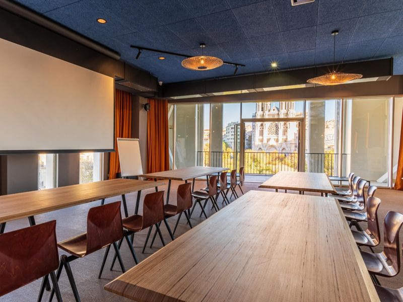 Equipped room, terrace overlooking the Reformed and the Saint-Vincent de Paul Church