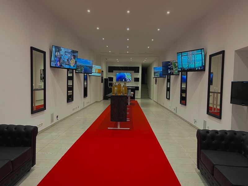140 m² room, perfect location, air-conditioned and equipped with 7 flat screens and 6 speakers