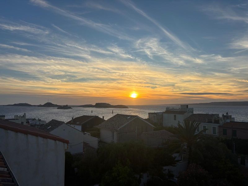 An exceptional 45 m² rooftop with a 360-degree view of the Frioul islands, the Château d'If, the Prado harbour, the hills and Notre-Dame de la Garde.