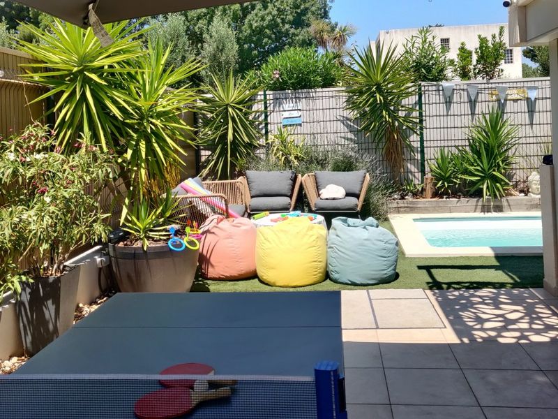In the evening, the swimming pool lights up in various colors and a garland is activated to light up the entire garden. At night, the clear sky offers you a spectacle of stars. Numerous parking spaces (some with electric car charging) are available and located near the residence. Garden for all occasions.