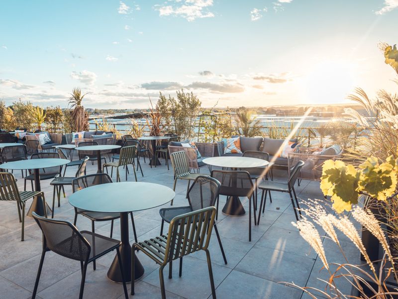 Rooftop with veranda area - Bar-Office-Caterer fully equipped with plants. Enjoy a 360° view of the building's roof terrace, and enjoy a unique experience in our 250 m² lounge area, 10 m above the ground. Our equipment, sound system and artist's music catalogue will make your event unique and exceptional.