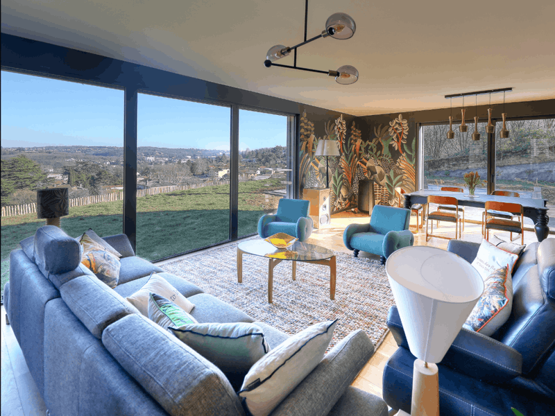 House offering a large living space with an exceptional view, a rooftop, a garden with swimming pool 8km from Lyon.