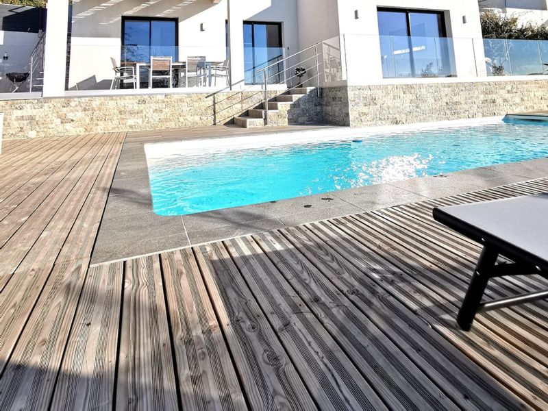 Magnificent modern house of 140 m² with a beautiful exterior, swimming pool, pétanque court and sea view, near Saint Jeannet, Vence