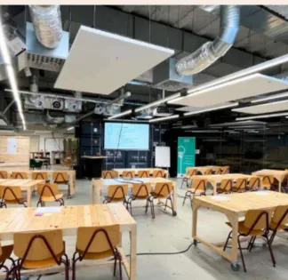 Equipment : Video projector, wifi, flipchart, post-it notes, pencils, racks + hangers, mix of furniture