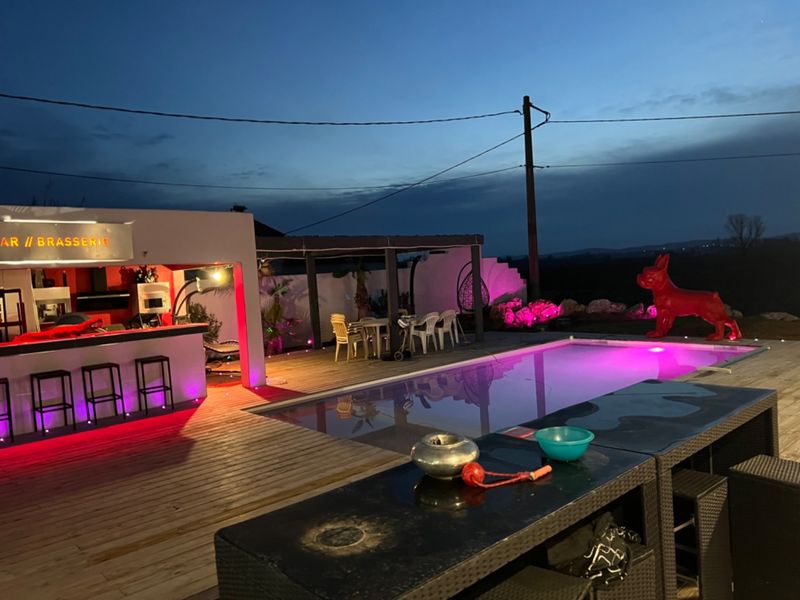 Outdoor pool shower, powerful speaker, micro relaxing deckchair.