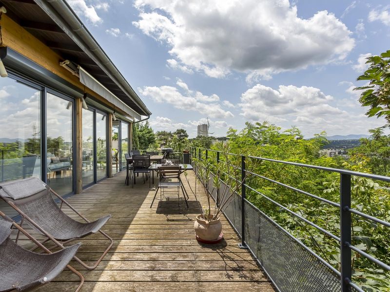 High space with large bay windows, panoramic south-west view of the Lyon mountains, on the outskirts of Lyon - daybreak with modular furniture / conference room or lounge of 100 m², two large terraces of 56 m² and 44 m² , including one with a 10 m² swimming pool, available mainly during the day.