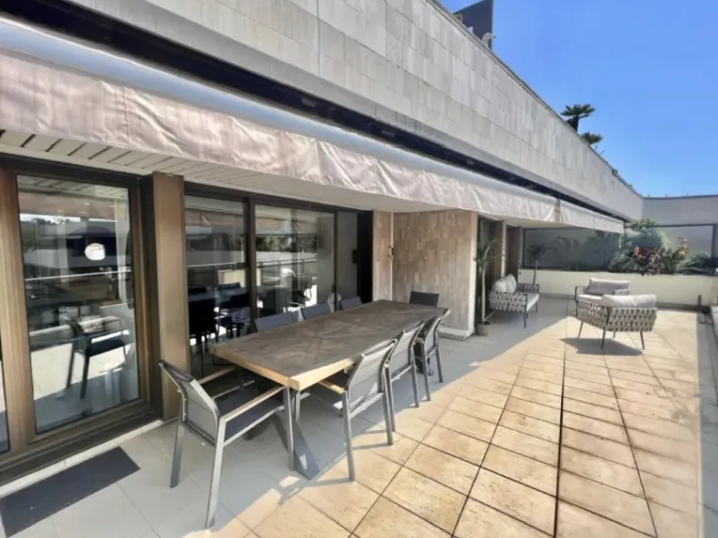 Floor. Spacious 3-room apartment of 80 m2 opening onto an open-air terrace with a panoramic view of the sea and the Croisette. Entrance with guest toilet, spacious living room with