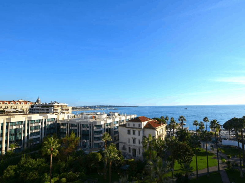 In a luxury residence with park, secured 24/24, located between the MARRIOTT and the MAJESTIC, close to the Palais des Festivals, 3 room flat with terrace and sea view, it is composed of an entrance, guest toilet, a living/dining room, kitchen, opening on a south terrace, a double bedroom en-suite with bathroom, shower and toilet opening on a north terrace,