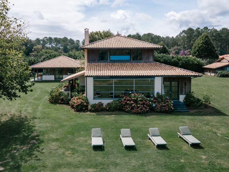 This luxury villa near Lit-et-Mixe boasts extraordinary volumes. Set in an estate of over 4 hectares, it features a gigantic living room with bar, a dining room for 20 guests, numerous sofas and several meridiennes, a piano and four luxurious bedrooms. Beautiful house of almost 200m² with magnificent views over the park.