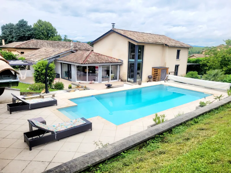 Plot of 1500 m² with lawn, fruit trees, two very large terraces and 10x5m swimming pool.