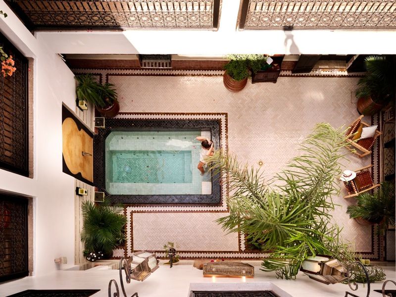 Splendid Riad of 400 m² in the heart of the medina of Marrakech. With its green outdoor garden, this true oasis is ideal for your retreats, seminars and small group celebrations. Consisting of four bedrooms with bathrooms, a massage room and a heated hot tub. Also available is a tailor-made service with butler and the possibility of ordering local dishes from our cook.