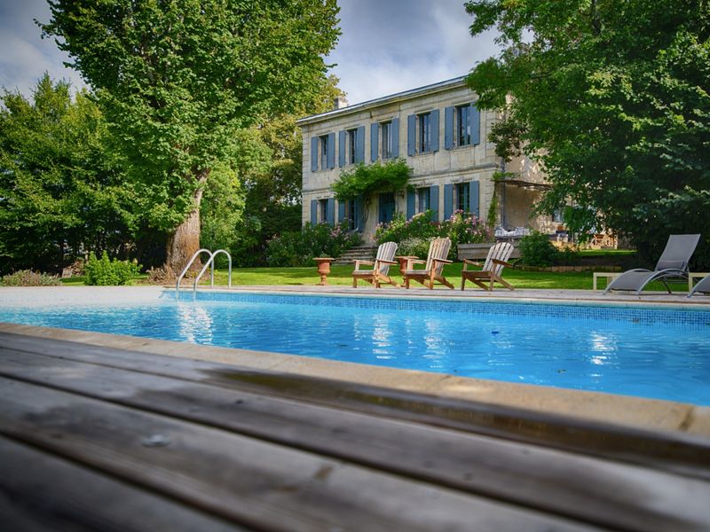 The 5,000 m² garden with trees and flowers includes 2 wooden terraces and a swimming pool. Its geographical location 45 minutes from Bordeaux on the Bayonne motorway makes it a strategic location.