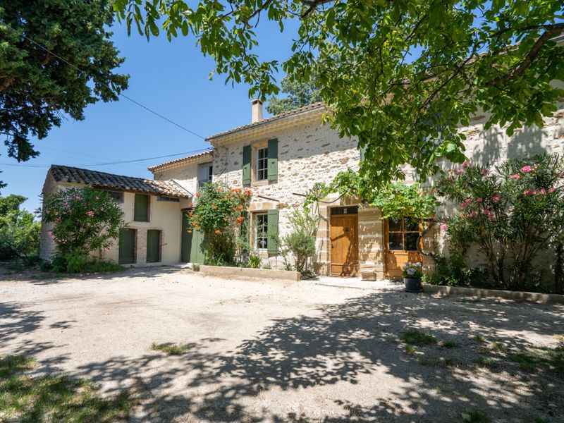 Farmhouse in the countryside surrounded by vineyards and olive trees with a beautiful view of Mont Ventoux and the Dentelles de Montmirail. Land of 5000 m², open view and swimming pool. 15 minutes from the motorway and 40 minutes from Avignon TGV station.