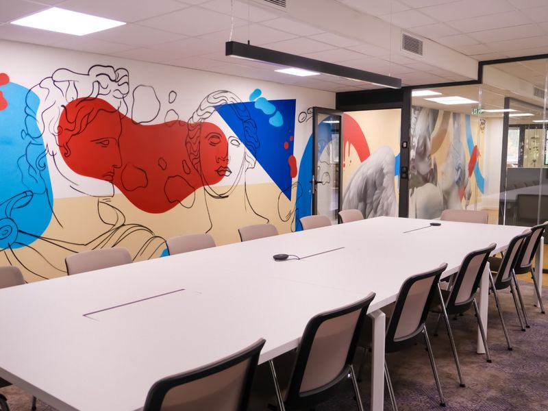 Located in the heart of the Sophia Antipolis technology park, our meeting space at ITEKCOM combines technology and art. The artist Caesar Malfi has enhanced the place with a 20-meter mural, infusing creativity and inspiration. Our cafeteria, with its green wall and Nespresso machines, offers a relaxing setting. Enjoy a unique and stimulating environment for your professional events, where innovation and comfort meet.